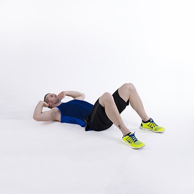 Pozycja wyjściowa – leżąc, unieś lekko nogi, a ręce skrzyżuj za głową.